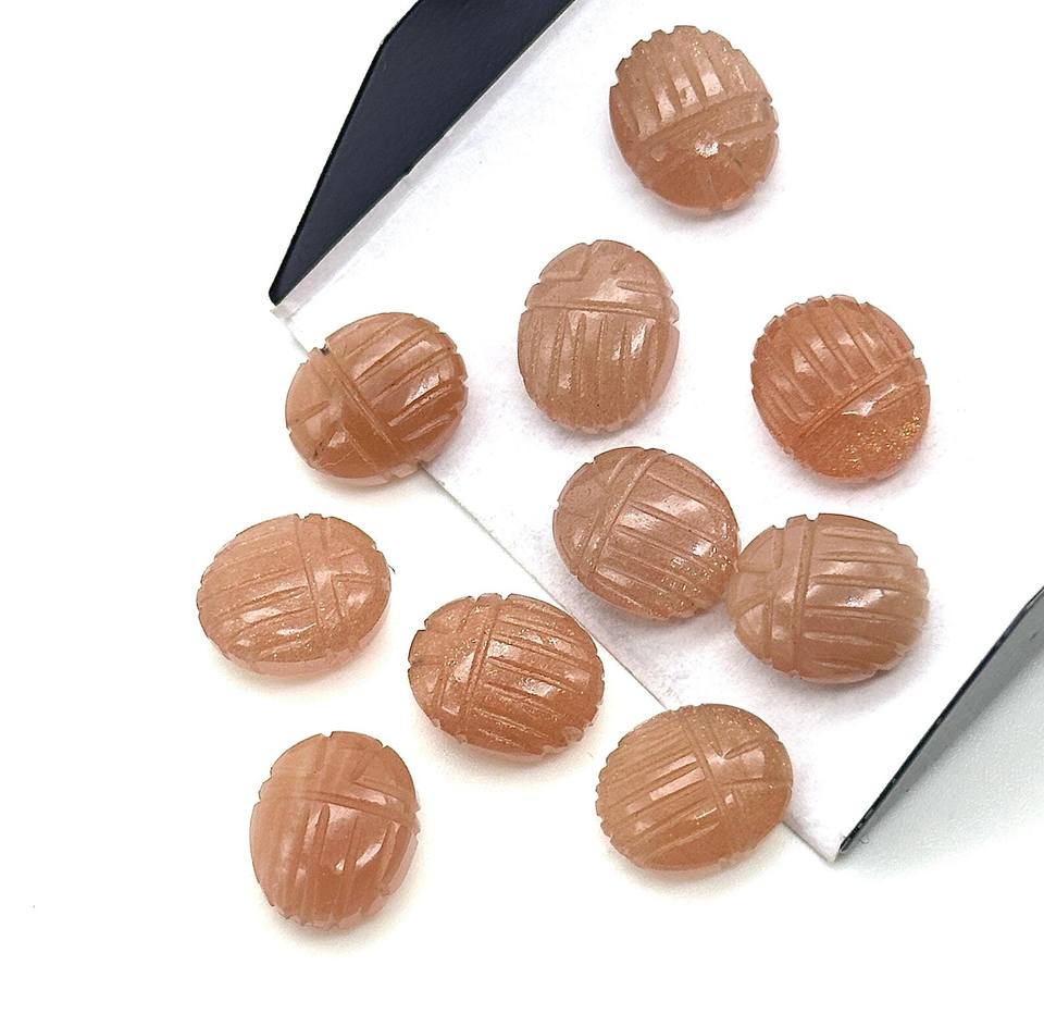 Sculptée à la main pêche pierre de lune scarabée forme scarabée visage pierre précieuse naturelle en vrac pour la fabrication de bijoux et fournitures en gros