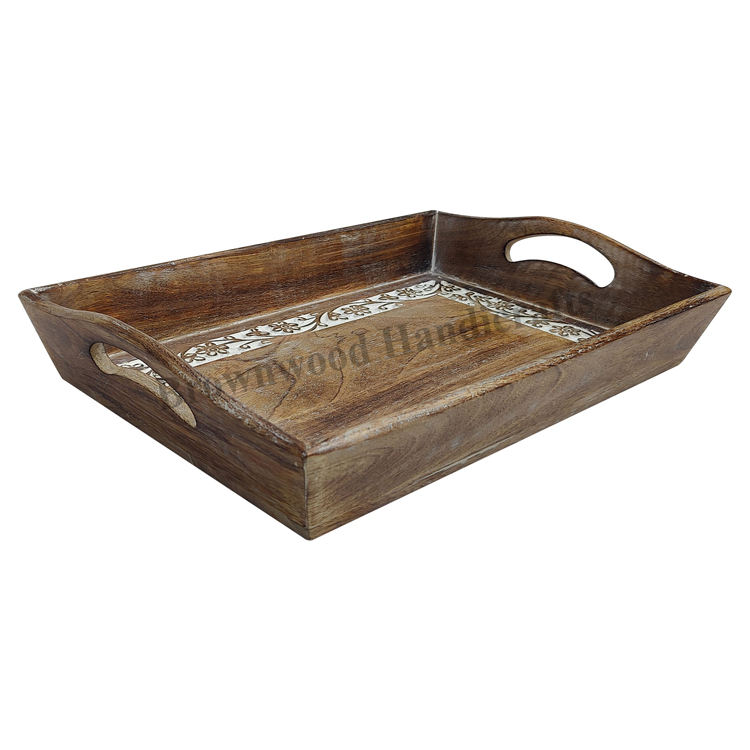 Wooden Hand Carved Tray with HandlesProduct Name