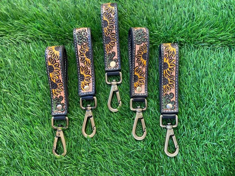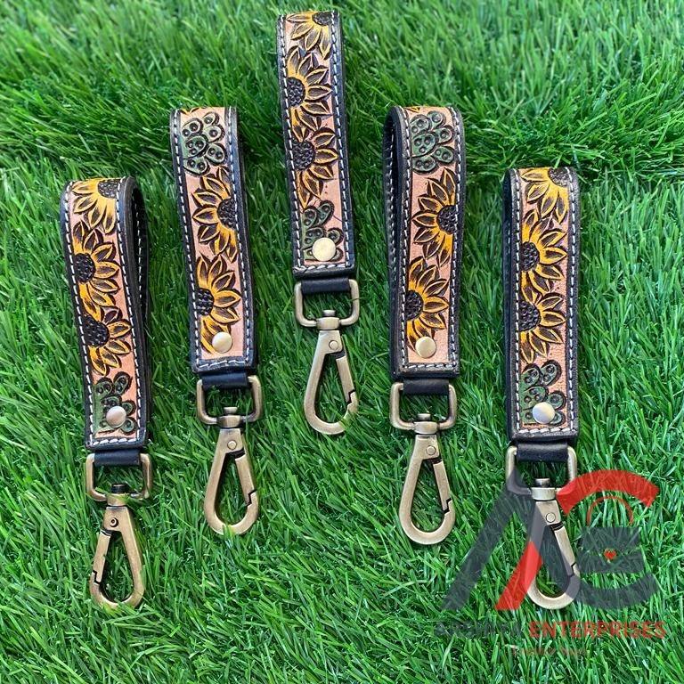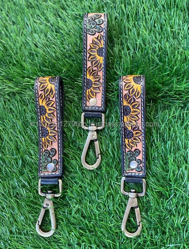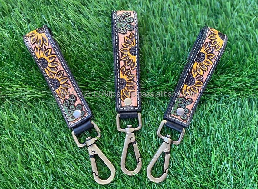 Porte-clés en cuir taillé sculpté à la main Porte-clés en cuir imprimé floral gaufré Accessoires en cuir taillé Porte-clés mignons pour hommes