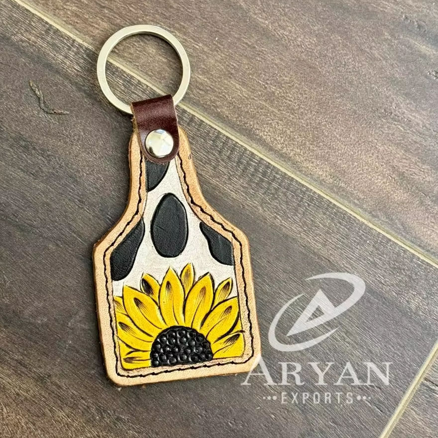 Porte-clés en cuir taillé sculpté à la main Porte-clés en cuir de forme exotique mignon Accessoires en cuir taillé Porte-clés mignons pour unisexe