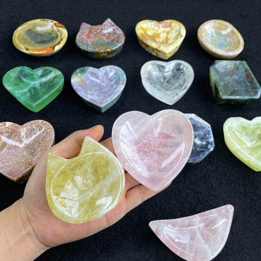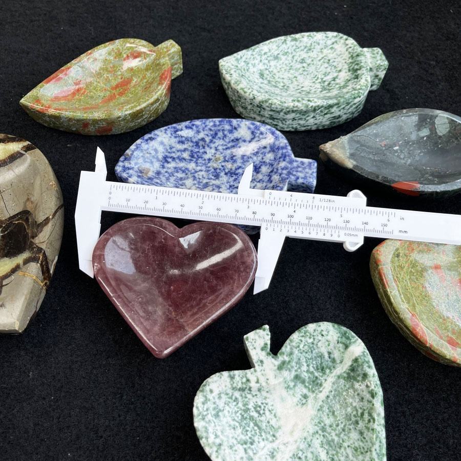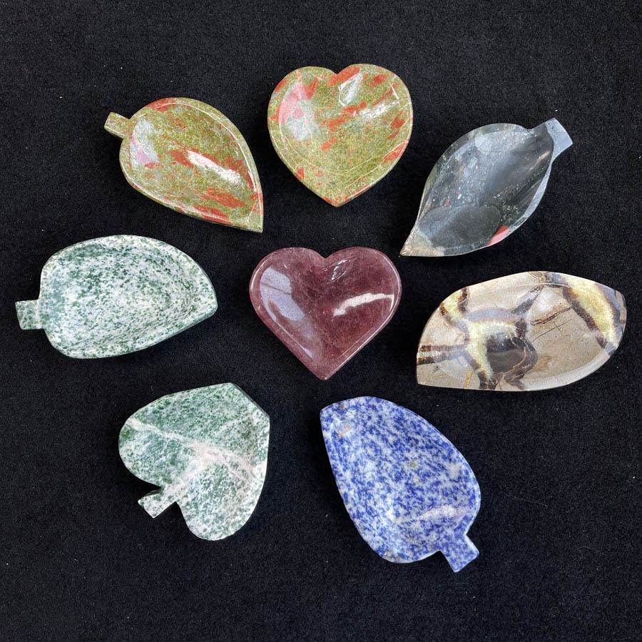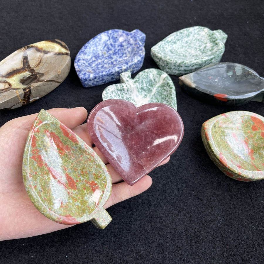 Sculpté à la main Unakite Quartz cristal coeur lune bol méditation cristal naturel feuille forme bol