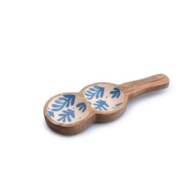 Plateau de service à condiments en bois sculpté à la main Double bol plateau à collation avec poignée apéritif plat de service maison Restaurant hôtel