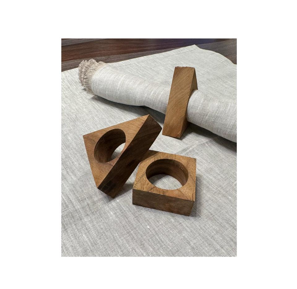 Anneaux de serviette en bois sculptés à la main ensemble de motifs géométriques carrés et triangulaires en gros décor de table moderne porte-serviettes