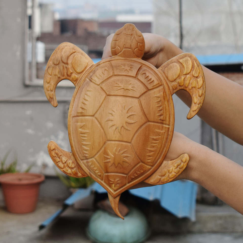 Hand Carved Wooden Sea Turtle Wall Decor Turtle Tortoise Statue Figurine Sculpture Wall Deco