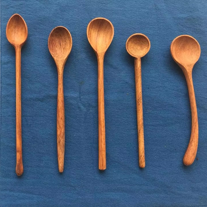 Cuillère en bois sculptée à la main avec manche en fleur/Cuillère à brindilles d'acacia naturel Ustensiles de cuisine en forme de coeur Vaisselle Artisanat d'affaires