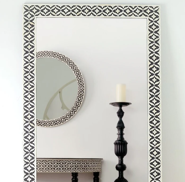 Jeu de puces en os incrusté de résine pour miroir mural incrusté à la main en personnalisation multicolore à des fins décoratives
