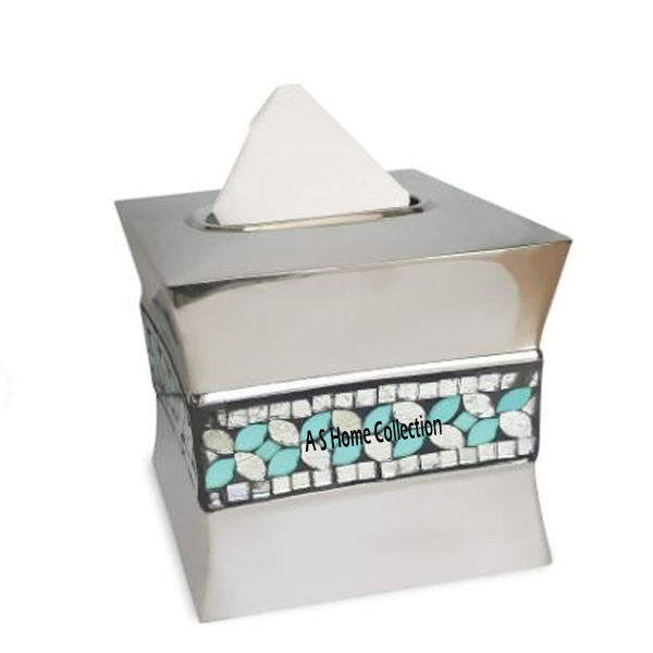 Boîte de mouchoirs en nacre en acier inoxydable pour bureau en métal fabriqué à la main de haute qualité Restaurant café décor décoration de Table