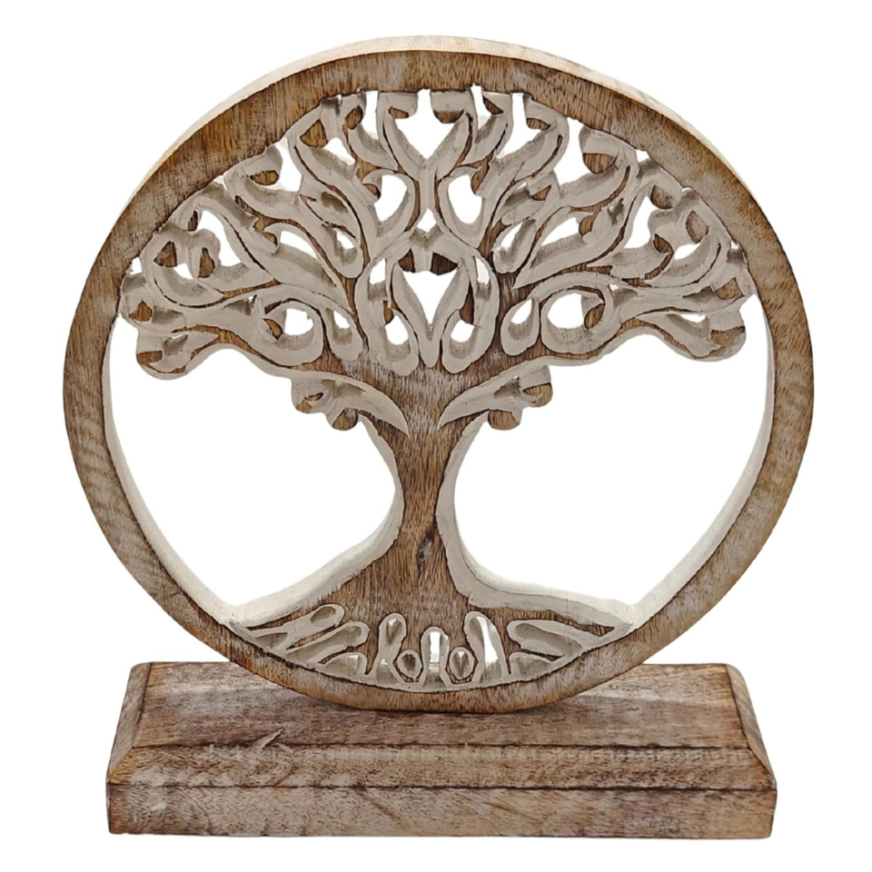Décoration de table sculptée à la main en bois de manguier, motif arbre, pour salon