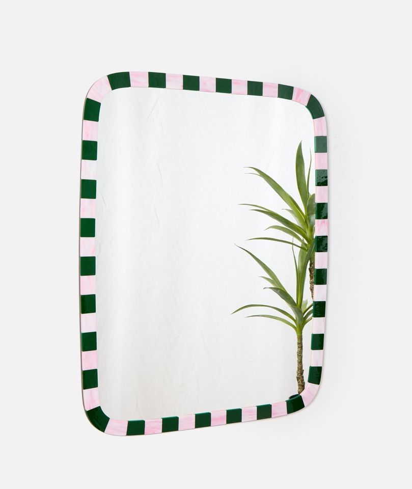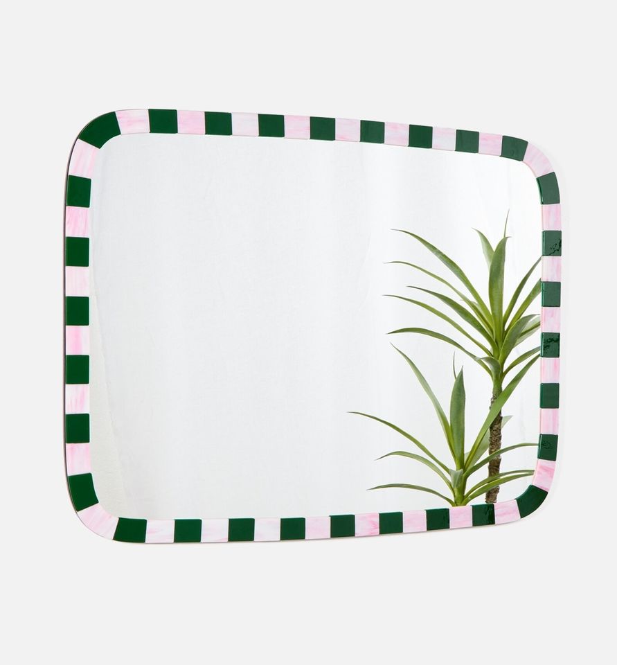 Miroir mural en résine époxy fabriqué à la main en double couleur rose et vert décoratif pour la maison avec nouveau design et collage de chipset en résine