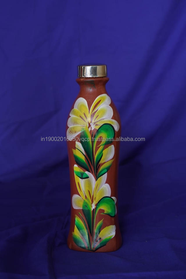 Bouteille d'eau en terre cuite en gros 15-25-35 OZ fabricant indien Conception de fleurs fabriquées à la main peint terre émaillée Sipper