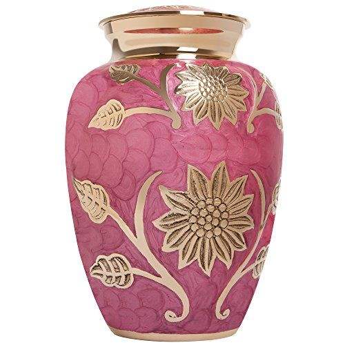 Fleur fabriquée à la main avec belle gravure en gros urne en aluminium crémation conception personnalisée