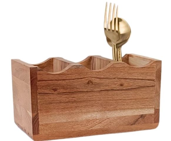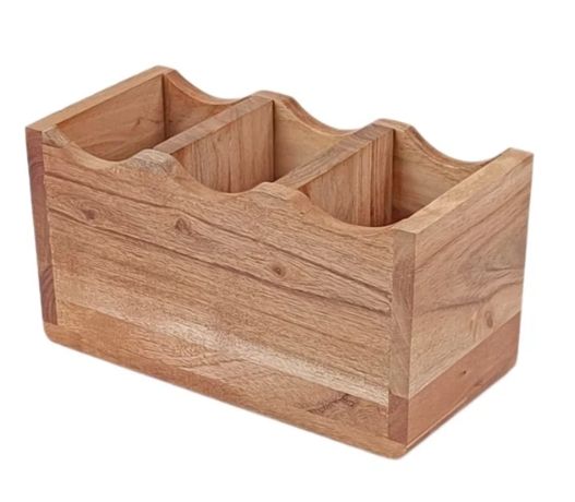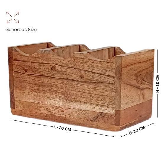 Hand Crafted Mango Wood 3 Part Cutlery Holder Sheesham & Mango Wood Wooden Utensil Caddy Countertop Cutlery Holder