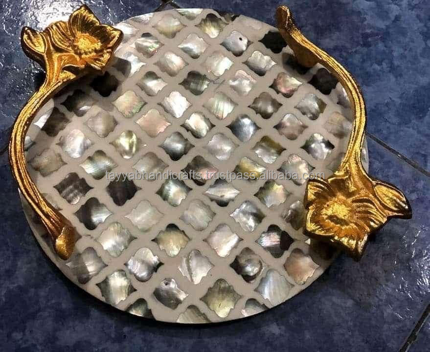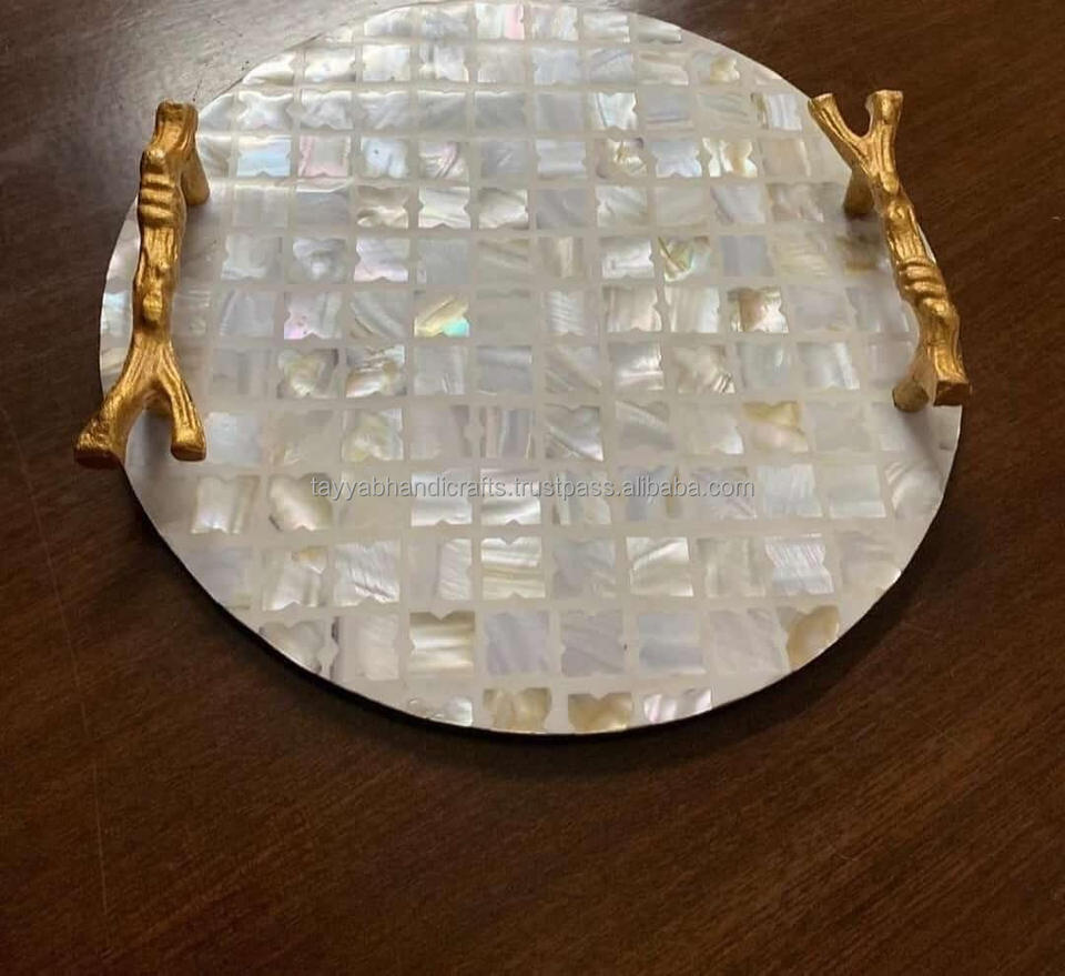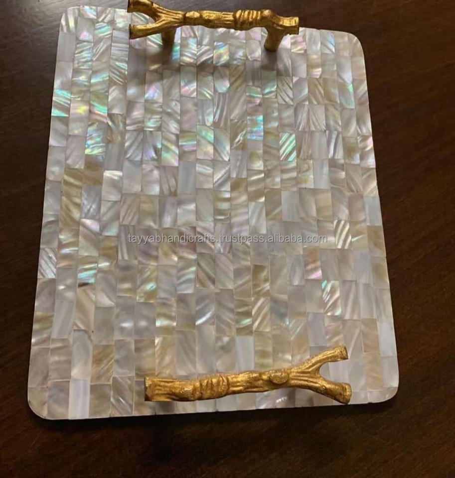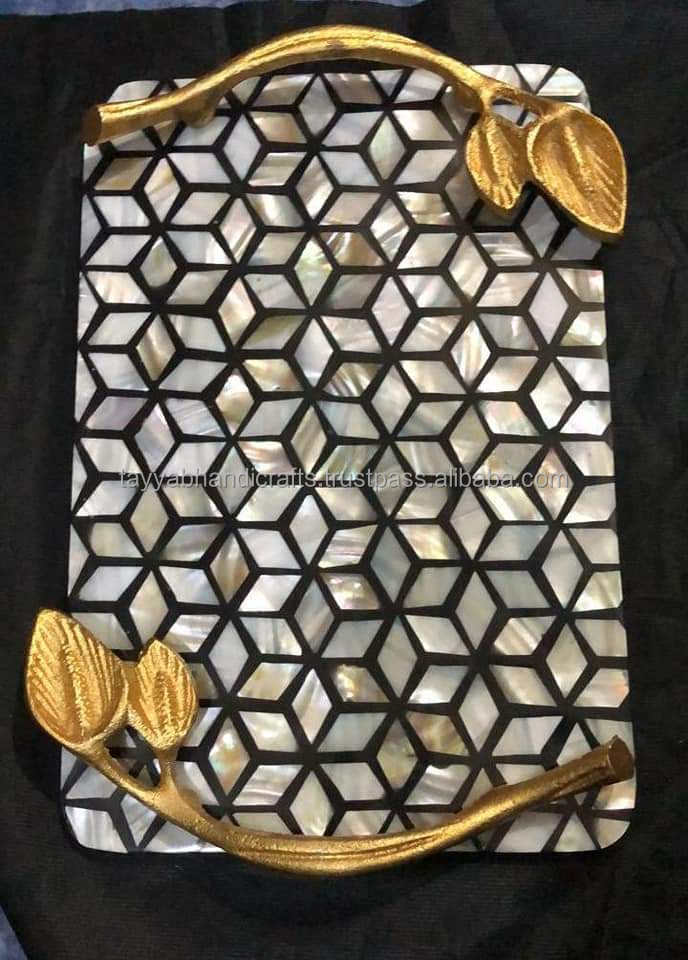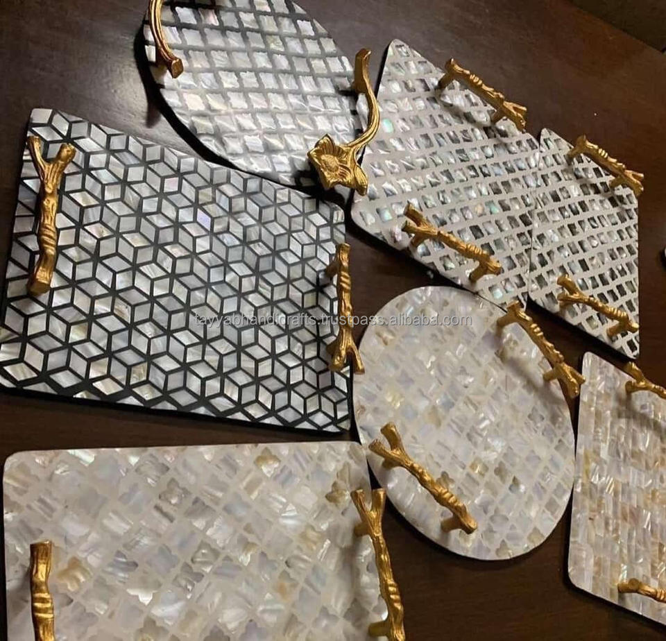Plateau de service MOP de qualité supérieure fabriqué à la main avec incrustation de nacre et de résine Taille personnalisée pour hôtels et restaurants