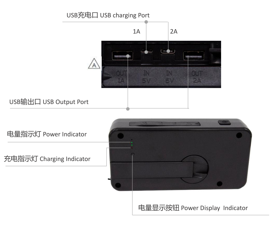 Puissance:Type-C & Micro USB entrée + dynamo + solaire