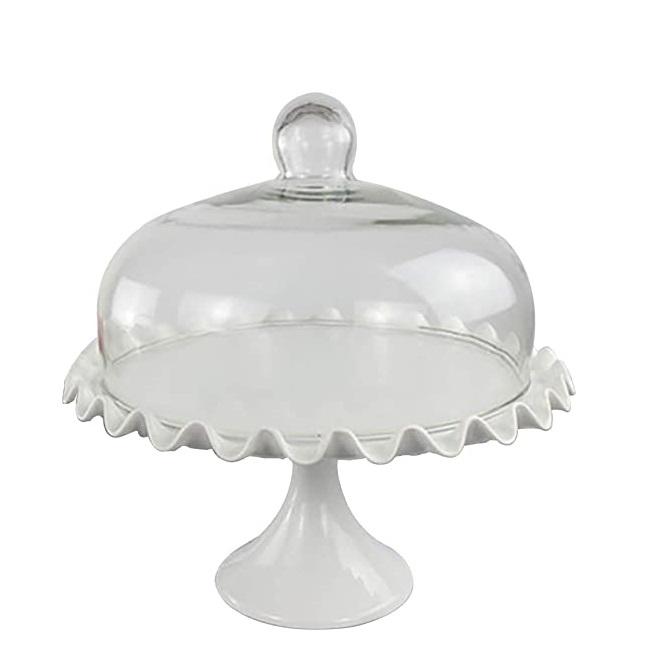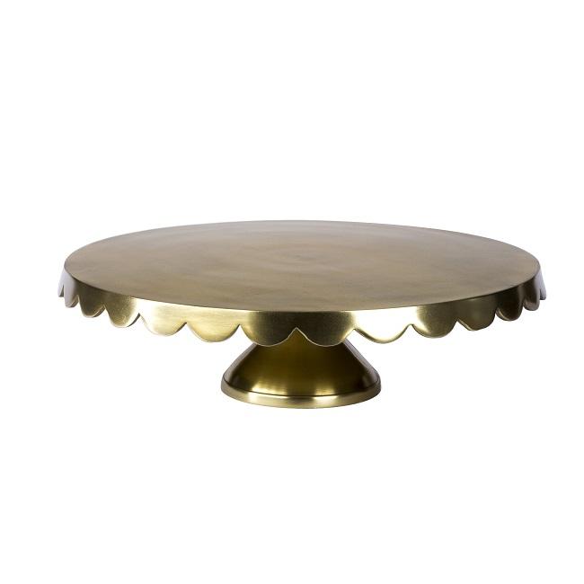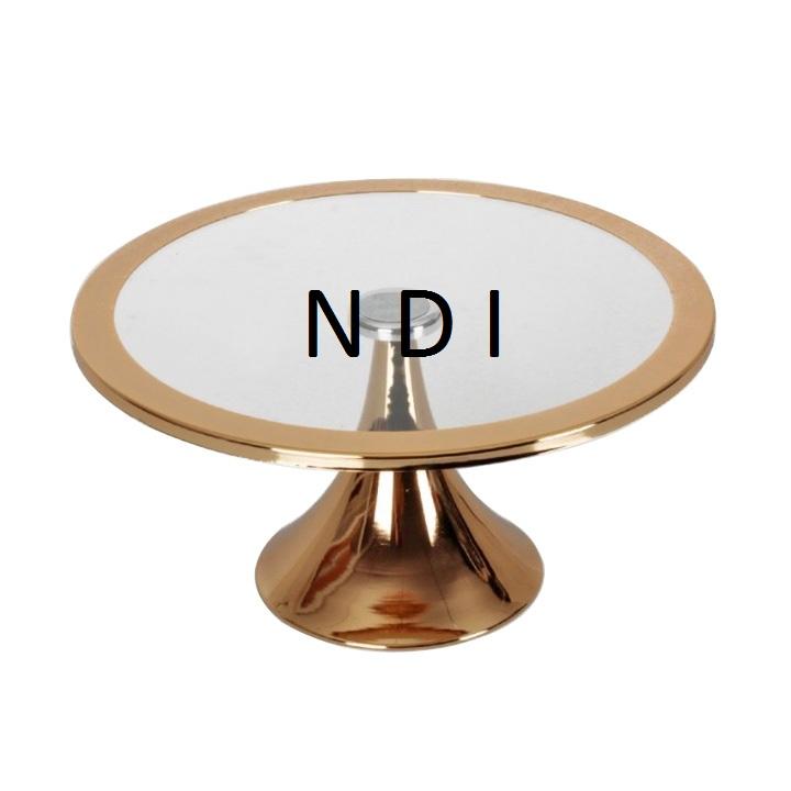Support à gâteau d'anniversaire de forme arrondie, design courbé à la main, finition plaquée bronze avec dessus en verre pour célébration de fête