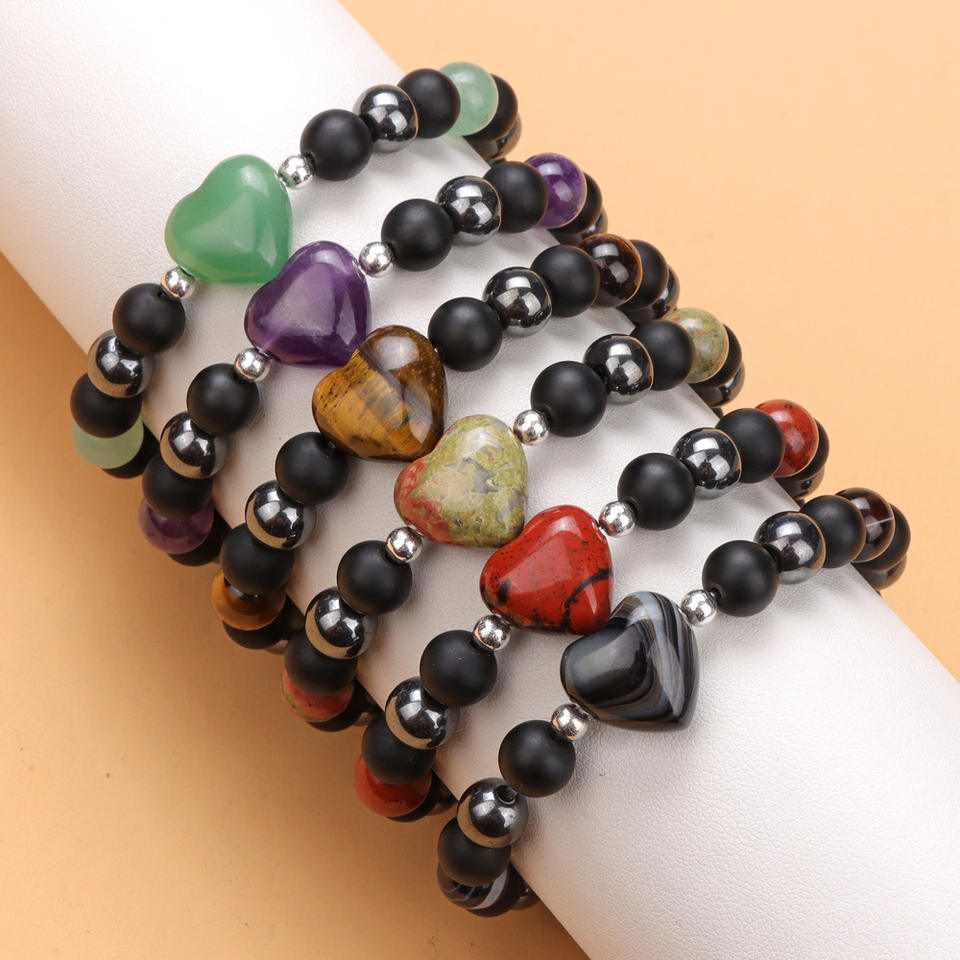 Ensemble de bracelets en forme de cœur taillés à la main, aventurine verte et œil de tigre, bracelets en cristal naturel pour couples, cadeau d'amour et de protection
