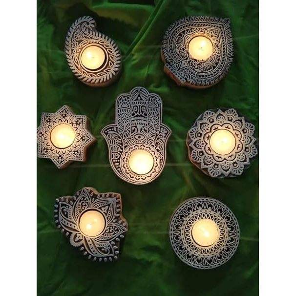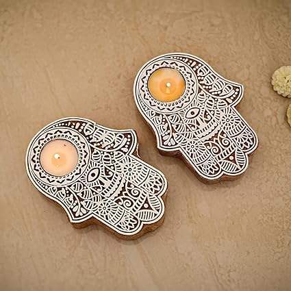 2 morceaux de bougeoir en bois de Tealight avec des bougies de cire de 2 morceauxLe forfait comprend