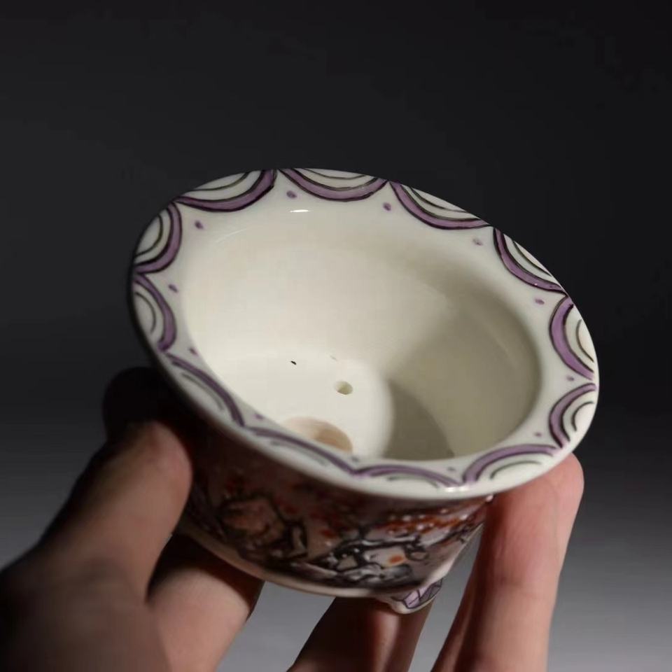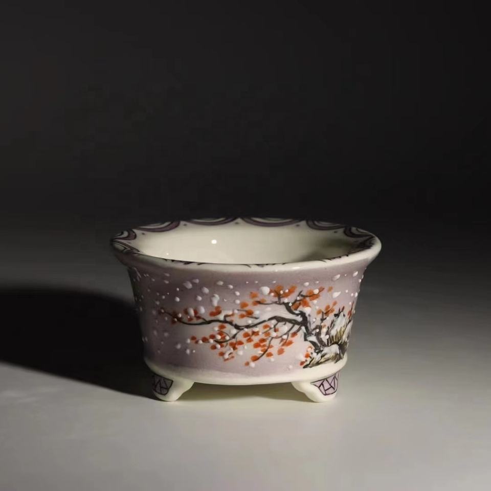 Dessin à la main pot de bonsaï Yixing avec paysage couvert de neige
