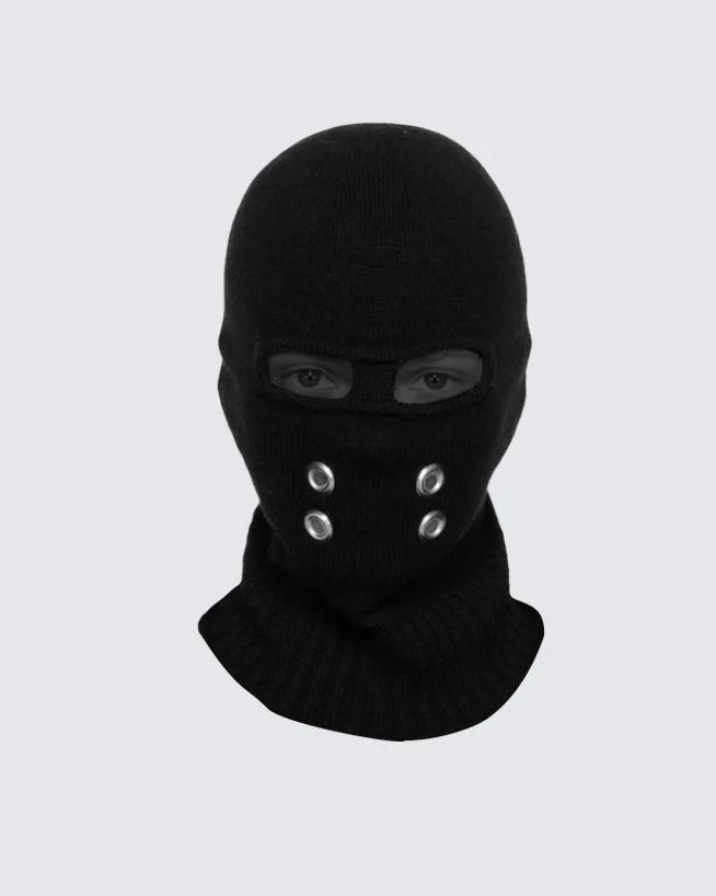 Cagoule de ski en tricot fait main, motif découpé, avec quatre œillets métalliques en laine, respirante, imperméable, pour le travail, la pêche et le quotidien