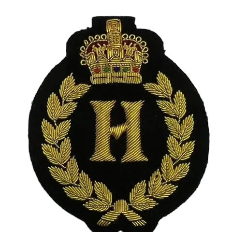 Badges en fil métallique brodés à la main, fabricants de badges en fil métallique sur mesure, fabricants de patchs métalliques 3D pour bérets, service OEM personnalisé