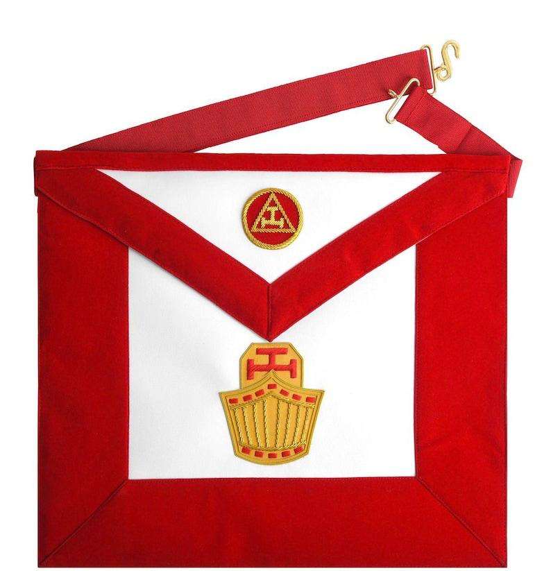 Tablier de Loge Maçonnique Brodé à la Main avec Fil de Bullion et Broderie Zari, en Coton-Polyester et 100% Peau d'Agneau de Luxe
