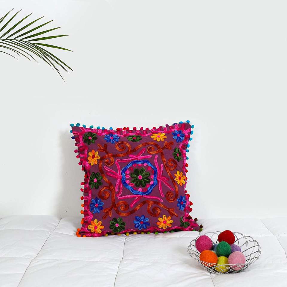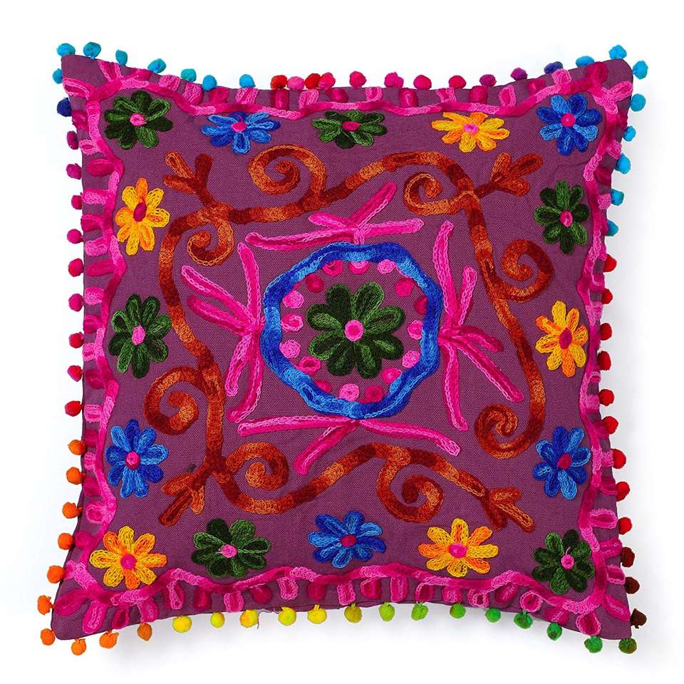 Housse de coussin en coton tissé à motifs floraux, faite à la main en Inde, carrée, style Suzani, 16 x 16 pouces, écologique, matériaux de première qualité