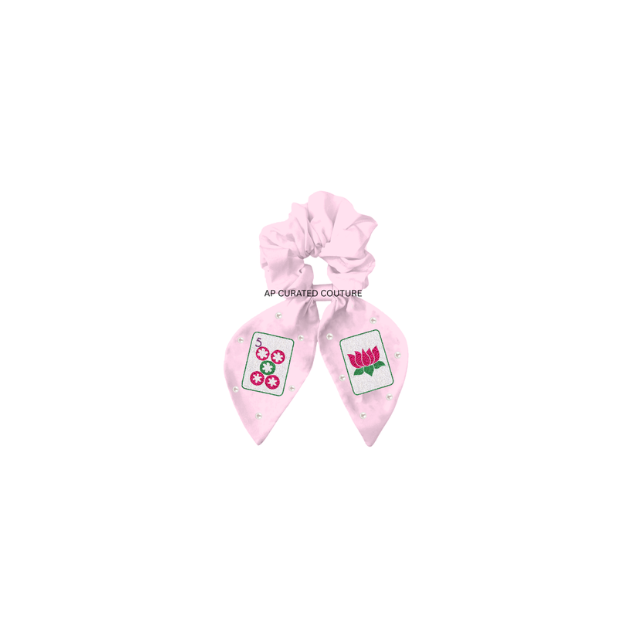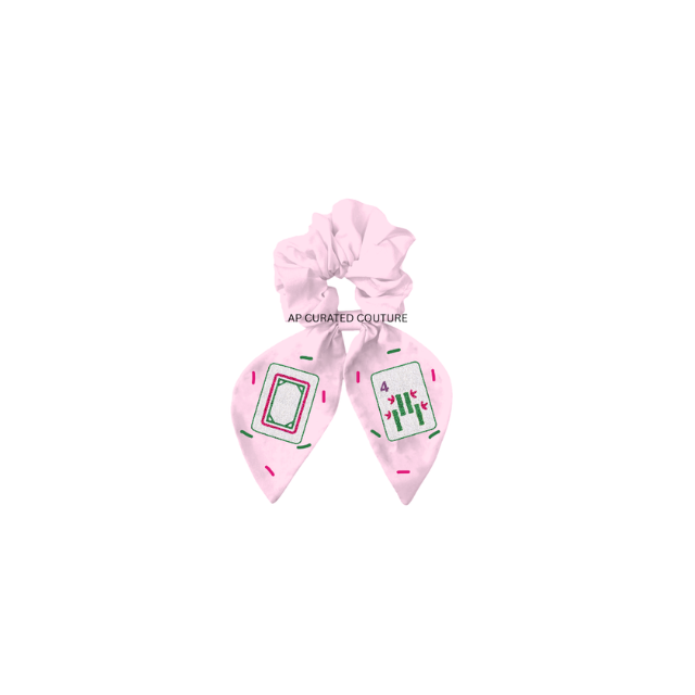 Chouchou pour cheveux en coton brodé à la main avec motifs tuiles de Mahjong et perles, accessoire d'équipe pour le jour du match