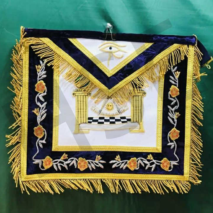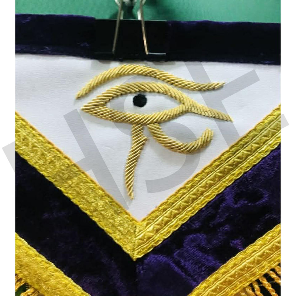 Tablier maçonnique brodé à la main avec franges dorées, Regalia de Loge Violette