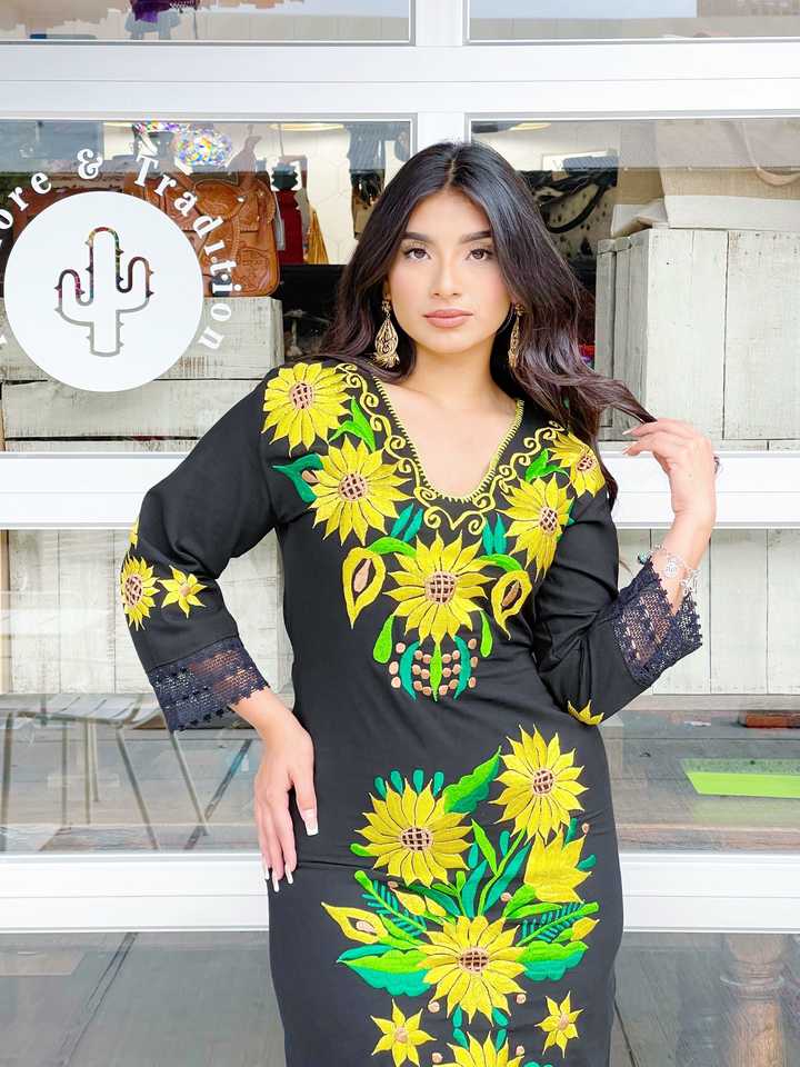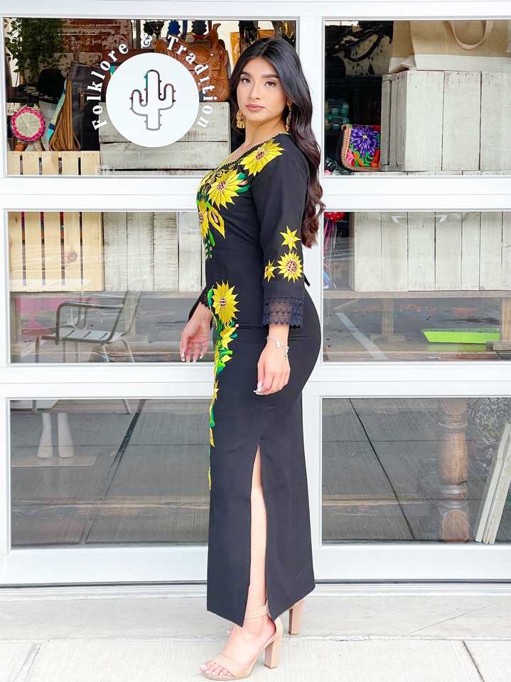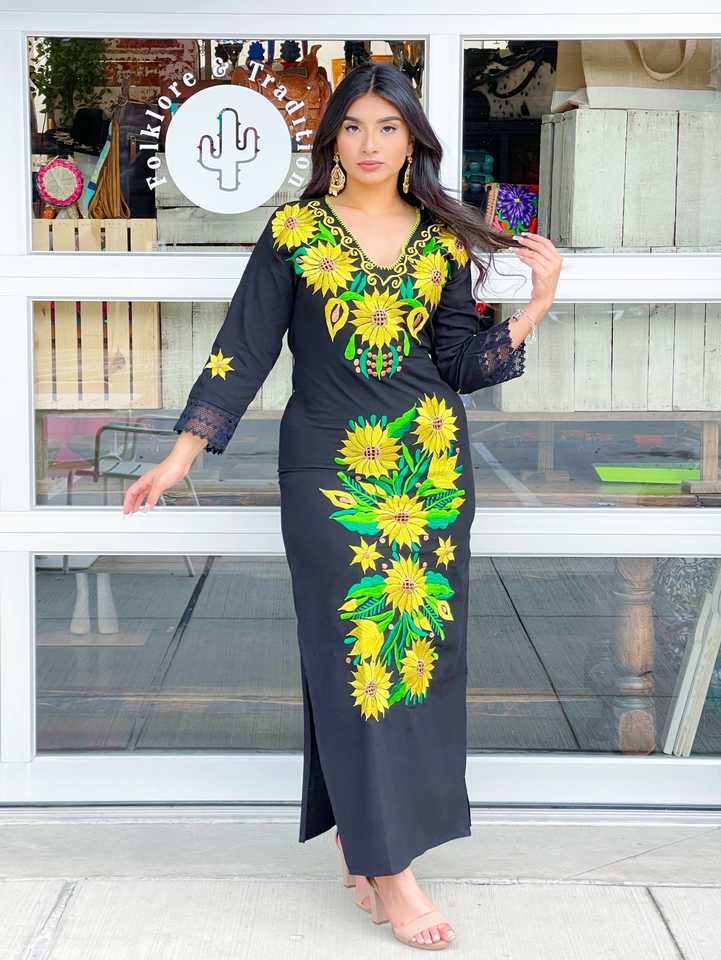 Robe longue mexicaine brodée à la main avec col design Long Style coton femmes Designers pour les robes d'été à fente haute de fête.