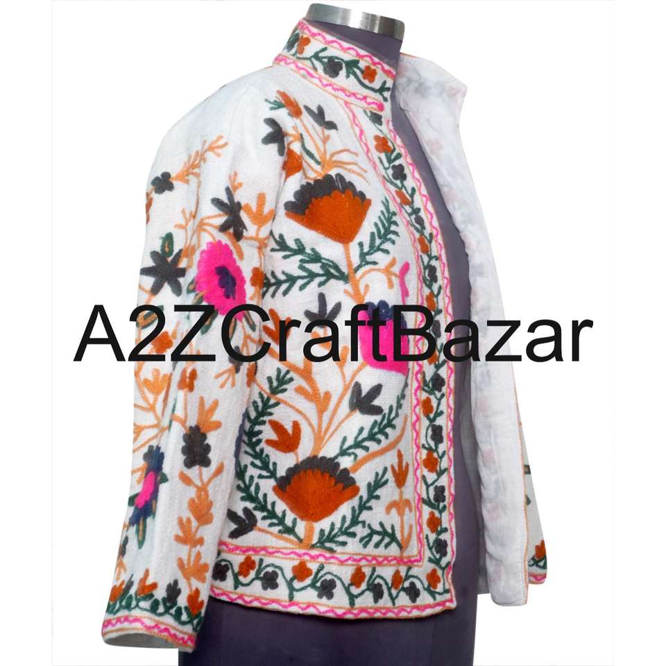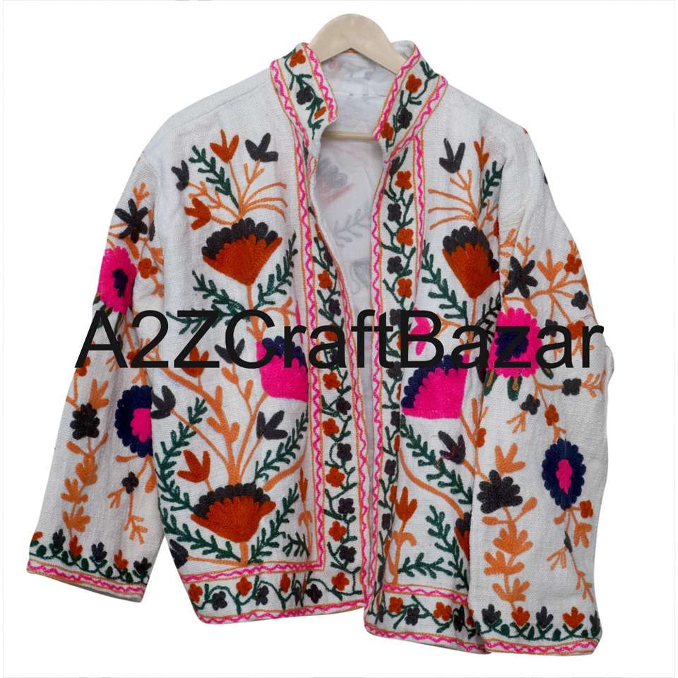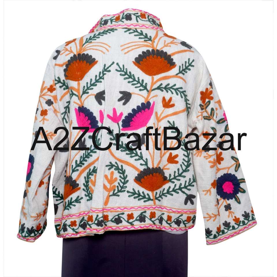Veste courte matelassée brodée à la main, veste Suzani faite à la main pour femmes, manteau d'hiver bohème en tissu de coton TNT