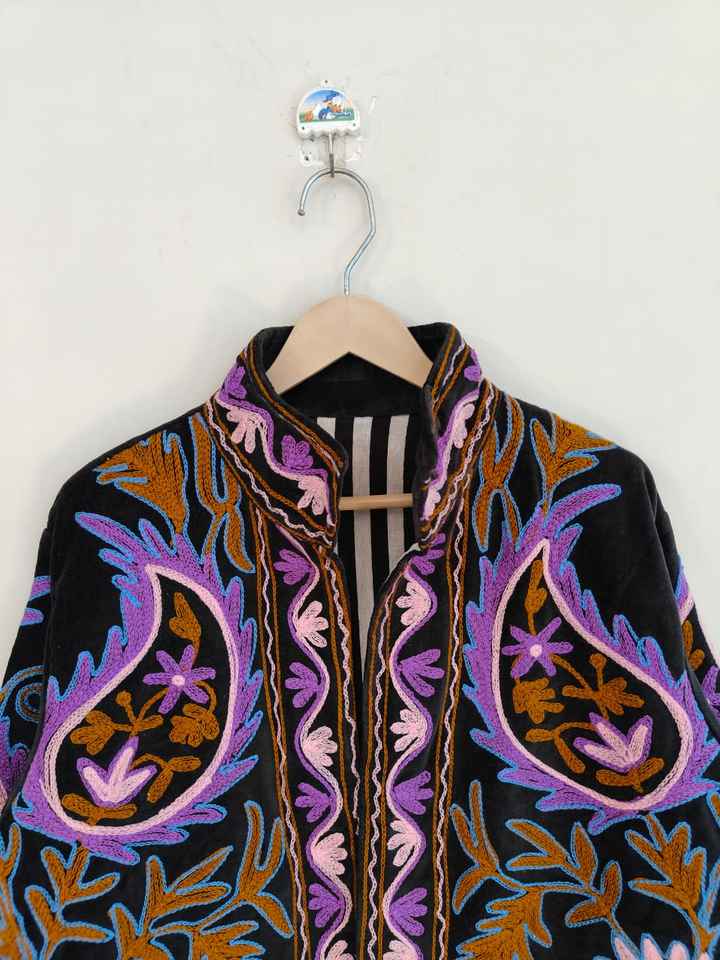 Veste en velours Suzani brodée à la main pour femmes, veste bohème en velours unique, élégante veste d'hiver, style moderne et tendance