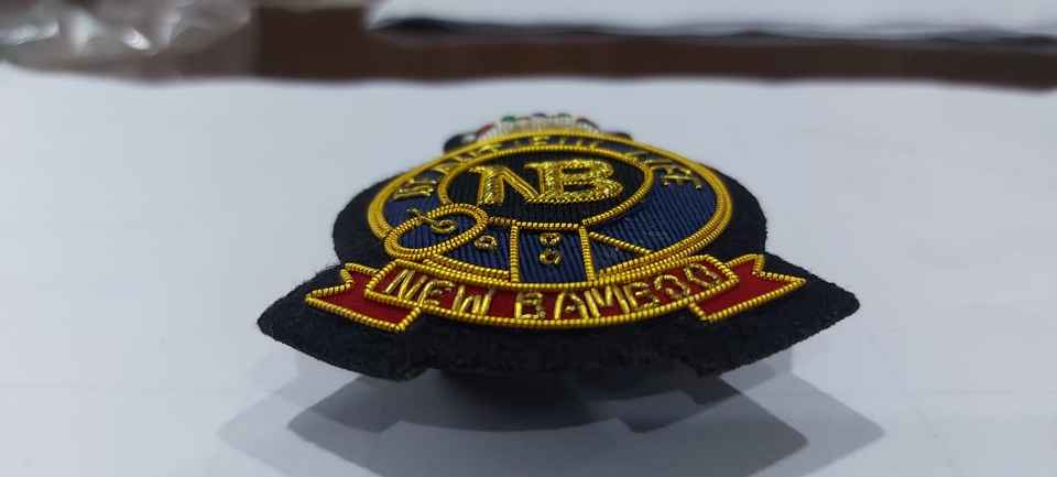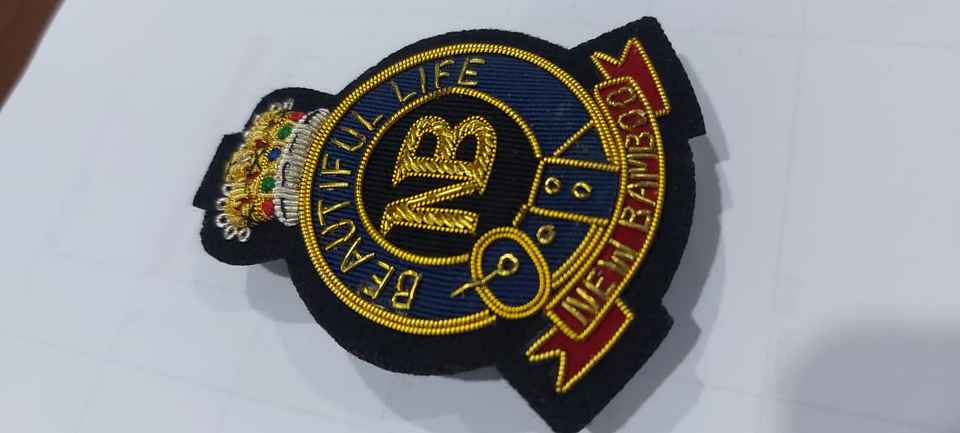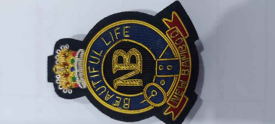 Insignes Wok brodés à la main Emblèmes en polyester avec fil métallique pour étiquettes de vêtement utilisant des techniques tissées