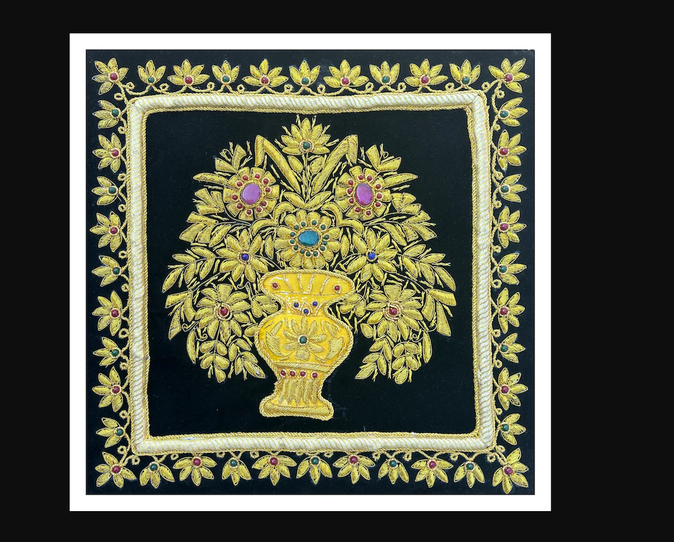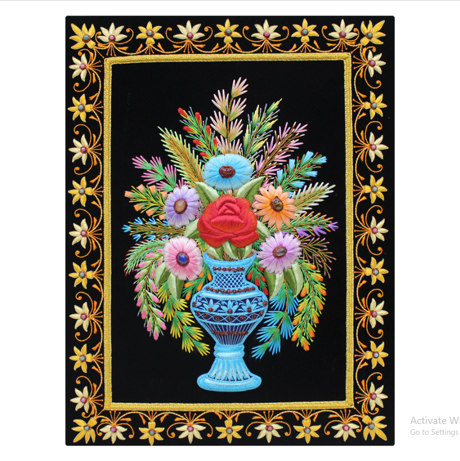 Broderie Zari moderne, broderie à la main sur toile de coton avec fleurs en résine, décoration murale, cadeau, fonction vase mural