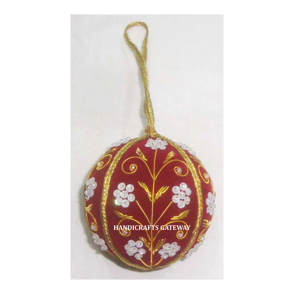 Belle broderie Zari dorée faite à la main avec conception en forme de boule perlée décoration d'arbre de Noël ornement suspendu au meilleur prix