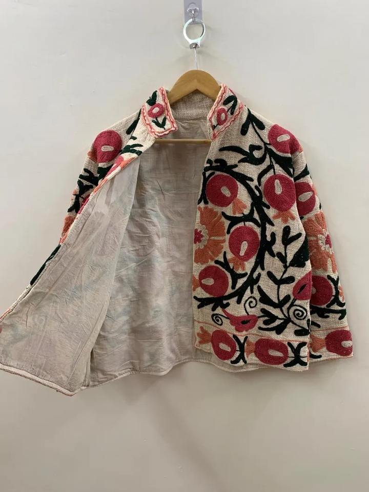 Veste courte en coton Suzani brodée à la main Manteau à fleurs Veste Suzani Broderie Vêtements pour femmes Veste TNT