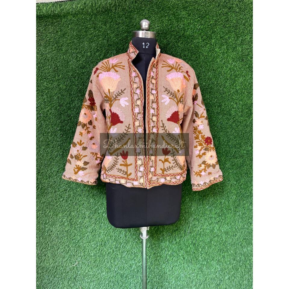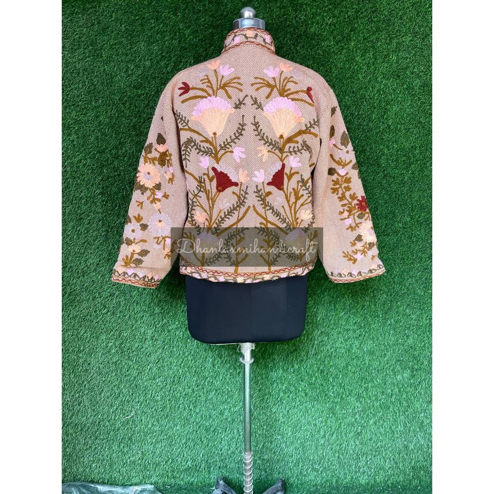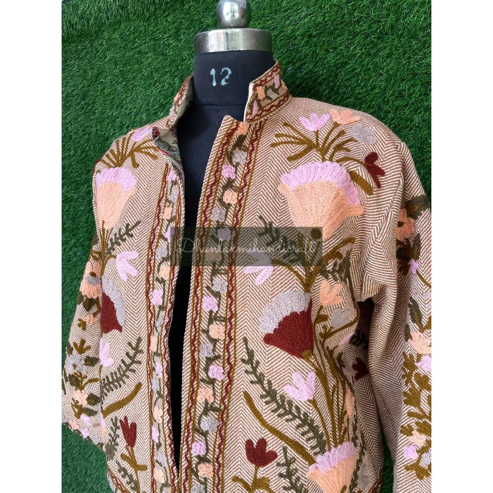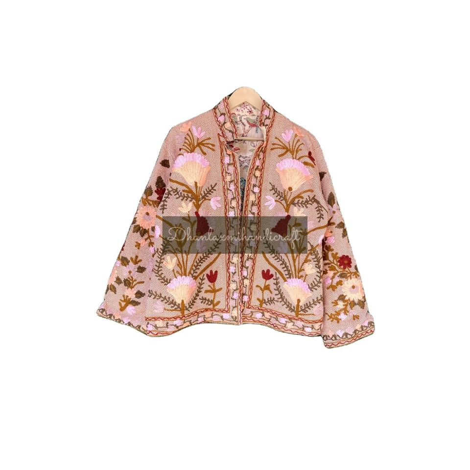 Veste courte d'hiver pour femmes brodée à la main pour la fête avec un pardessus unisexe en tissu Khadi en coton à la main Suzani
