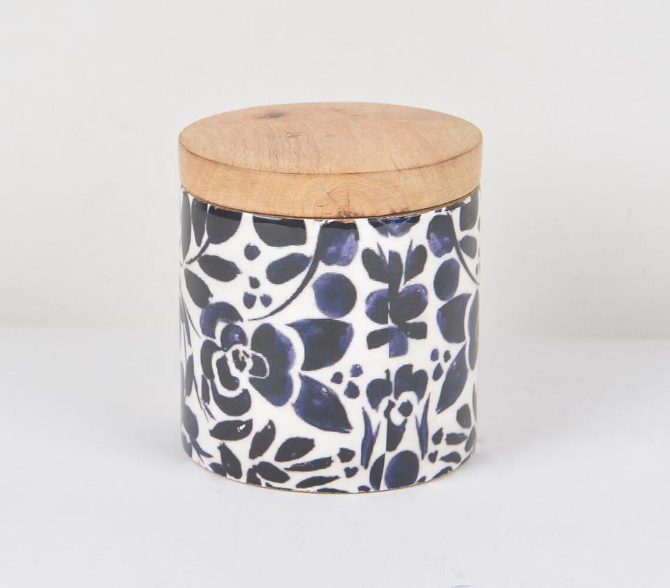 Boîte de conserve monochrome tournée en bois de manguier émaillée à la main avec motif personnalisé Fabricant en gros vente directe d'usine