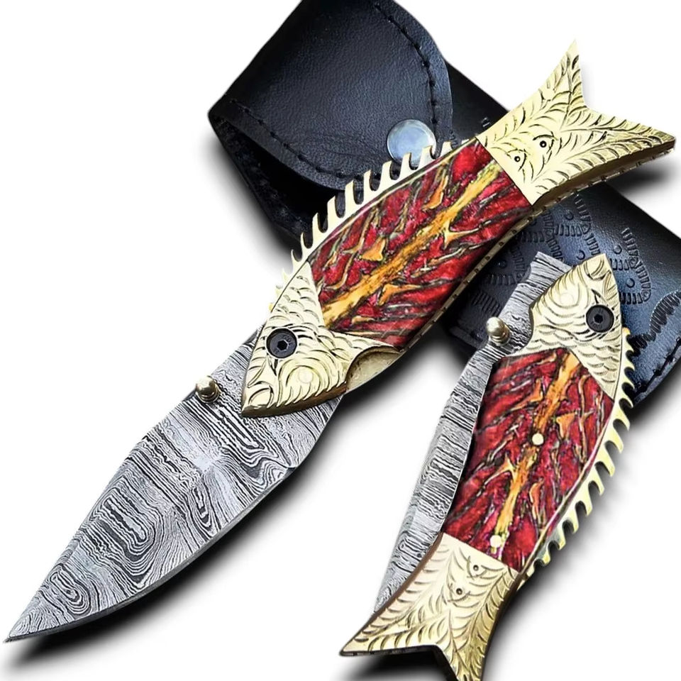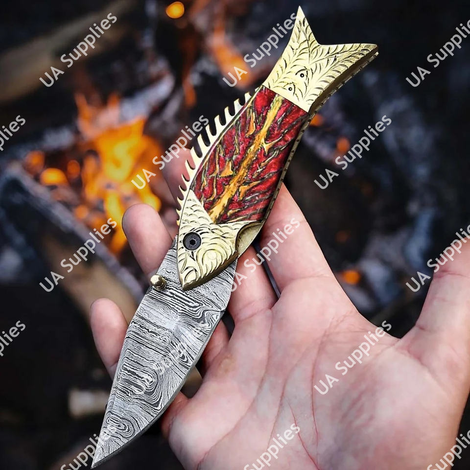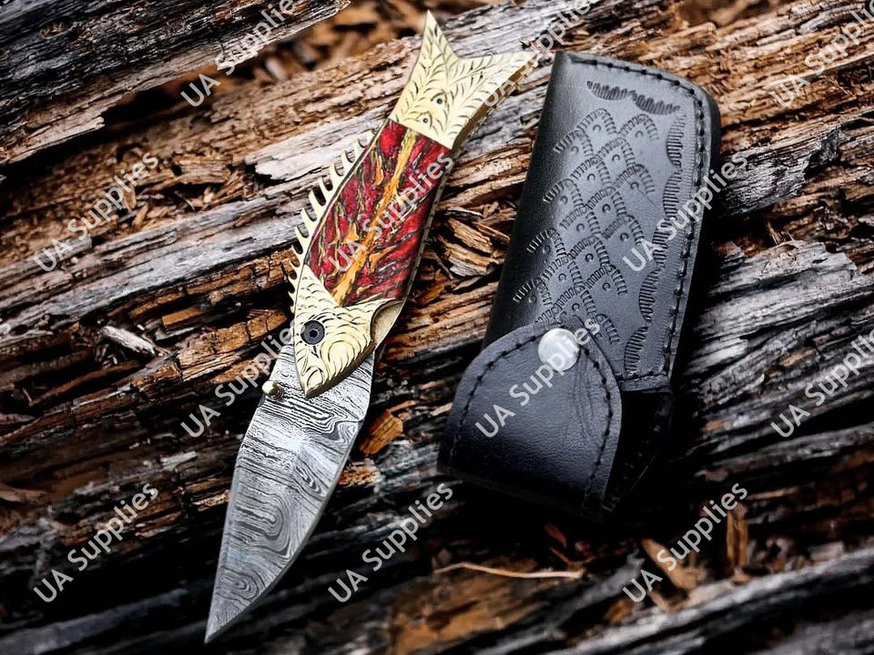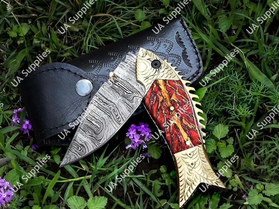 Couteau utilitaire pliant de camping en acier Damas gravé à la main, de haute qualité, à pointe tombante, 7,5 pouces, qualité OEM DIY