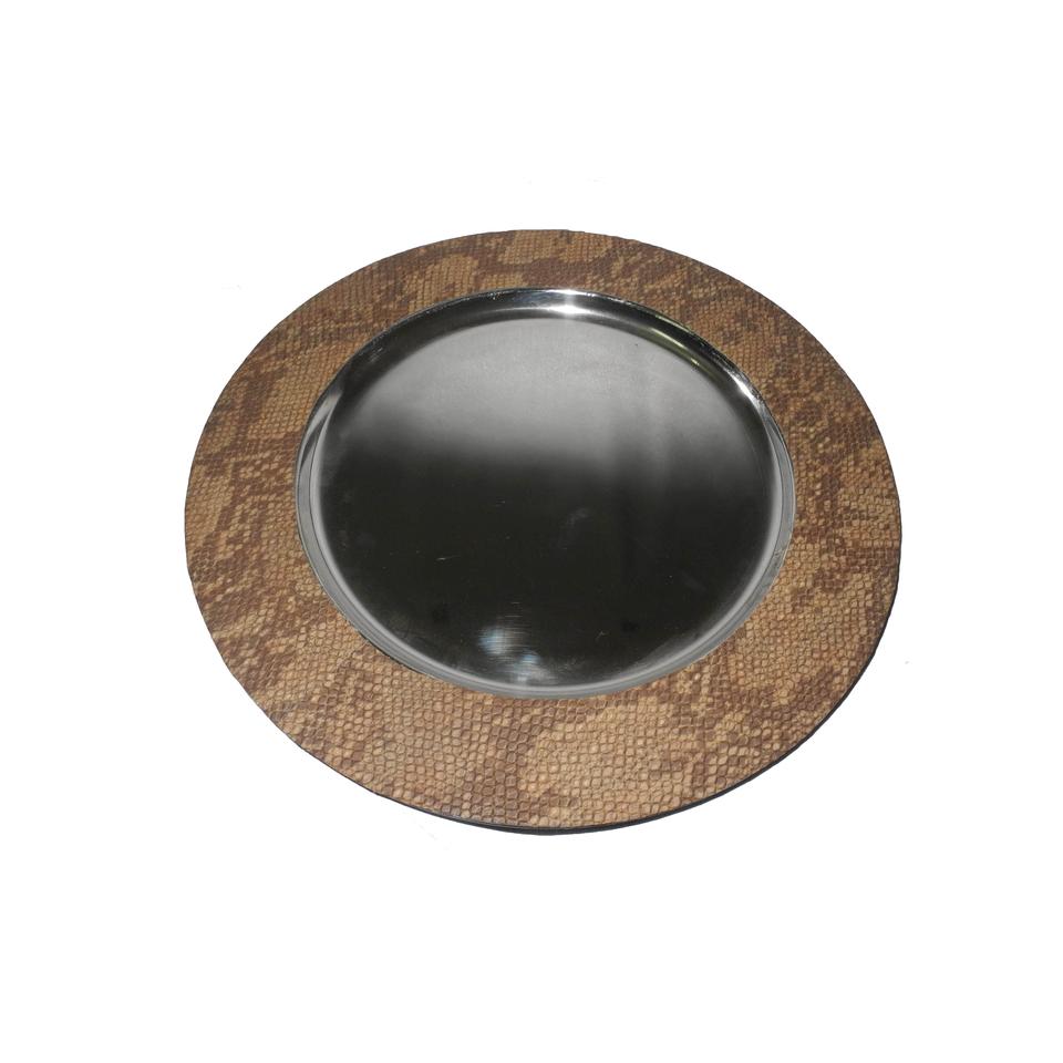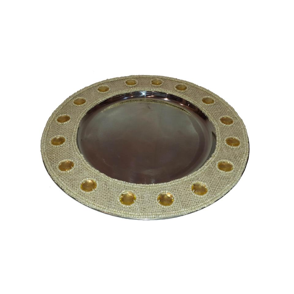 Assiette de service pour salade en acier inoxydable avec bordure décorative en perles multicolores gravées à la main, finition nickel, pour la maison et l'hôtel