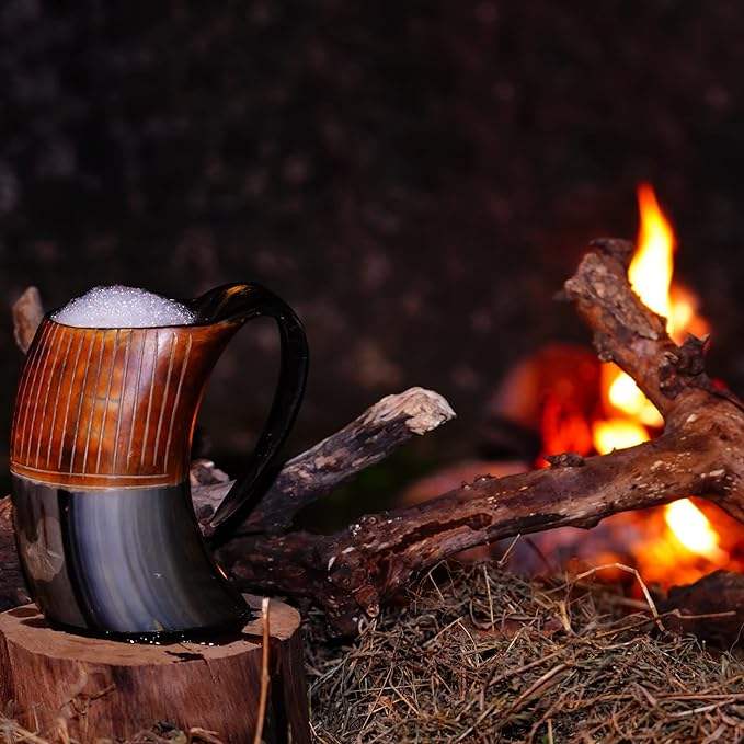 Mug en corne de bœuf gravé à la main avec loup sculpté à la main, écologique, mugs à bière et à café personnalisés pour les Vikings