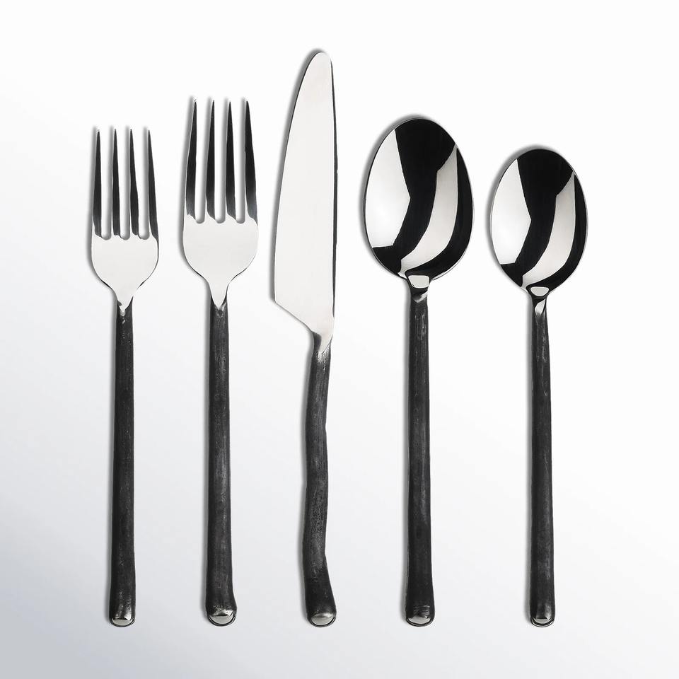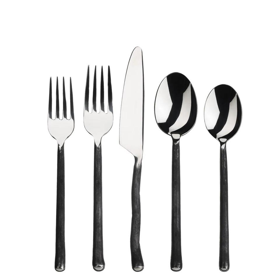 Ensemble de couverts anciens forgés à la main en acier inoxydable 304 nourriture argent ondulé noir fait à la main ensemble de couverts de sécurité alimentaire mariage restaurant