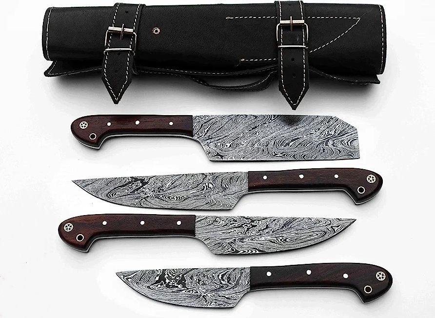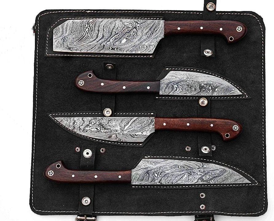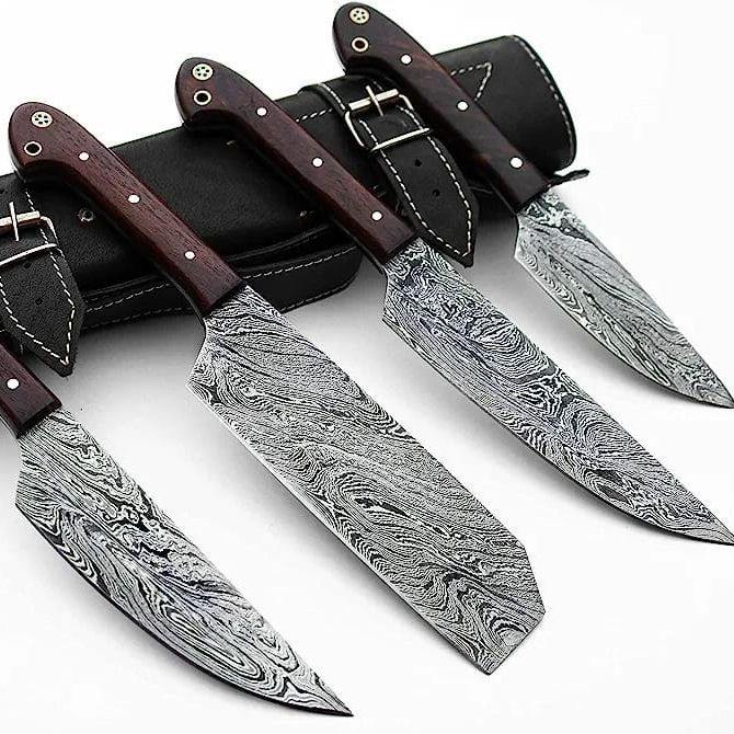Ensemble de couteaux de cuisine professionnels pour barbecue en plein air, 4 pièces, en acier damas forgé à la main, sur mesure