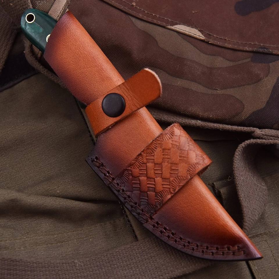 Couteau à dépecer à lame fixe en acier Damas forgé à la main avec étui, couteau de chasse et de camping personnalisé OEM à lame pleine avec manche haut de gamme
