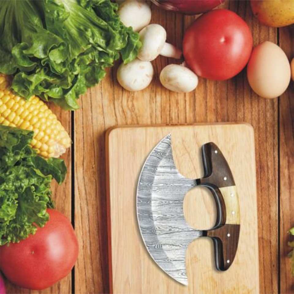 Couteau Ulu en acier Damas forgé à la main, manche en bois avec étui en cuir véritable, cuisine industrielle, DIY, ODM, OEM