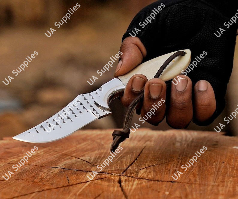 Couteau de camping forgé à la main pour fermeurs, lame en os de chameau, fourreau en cuir, personnalisable, vente en gros, support ODM/OEM