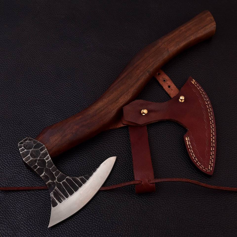 Hache de travail du bois et de camping en acier à haute teneur en carbone de qualité industrielle forgée à la main avec étui en cuir OEM personnalisé Lame de 4 pouces 800g