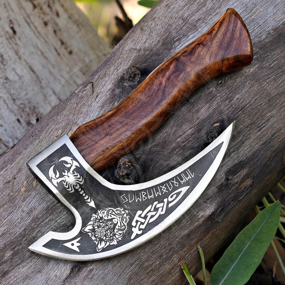 Hache à pizza Viking à haute teneur en carbone forgée à la main avec design personnalisé et étui en cuir pour chef Offre trancheuse à pizza