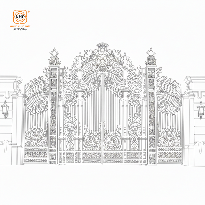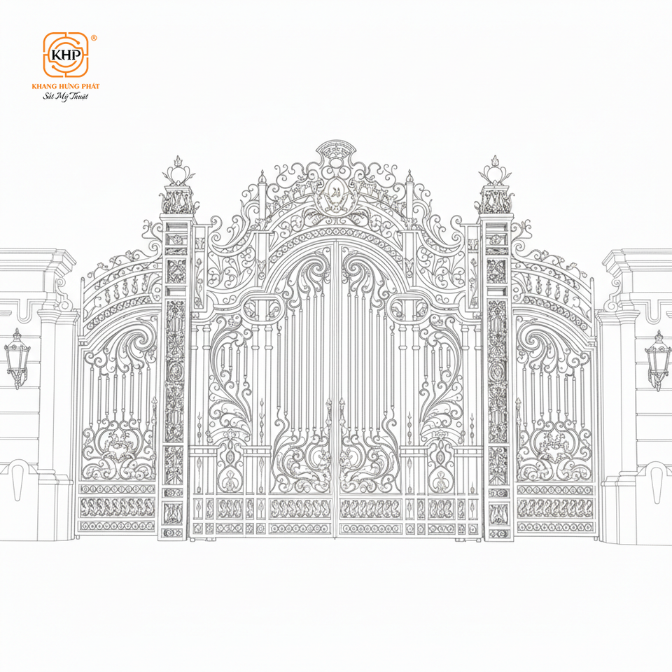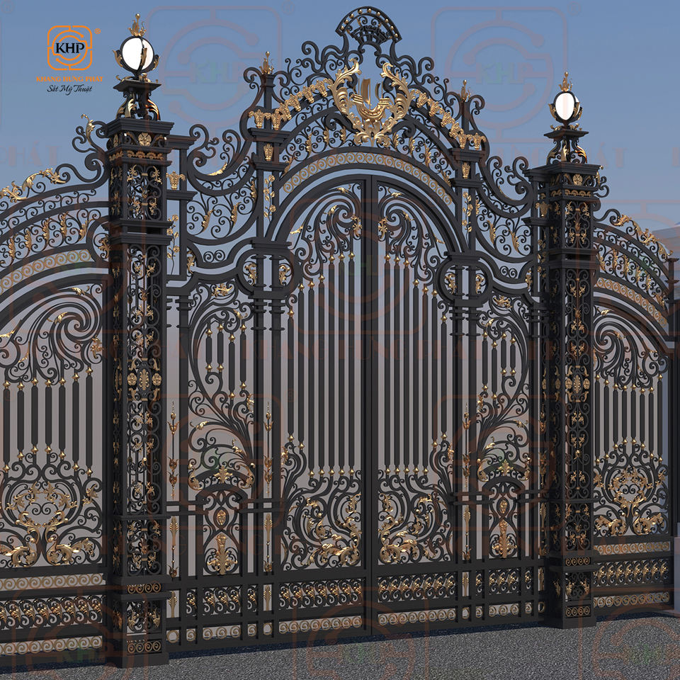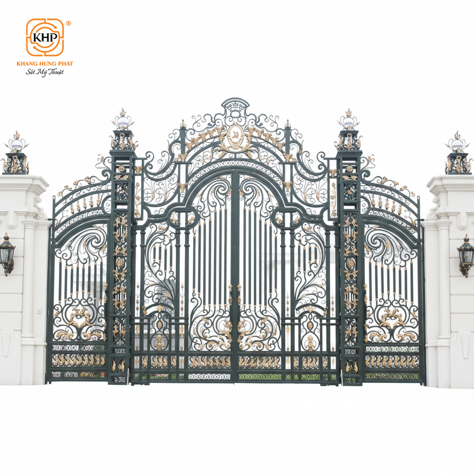 Portail double en fer forgé haut de gamme pour villa, design personnalisé 2D et 3D, fabriqué au Vietnam