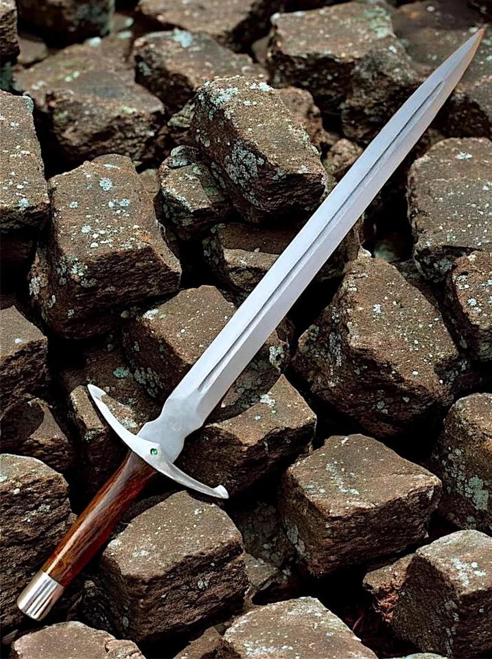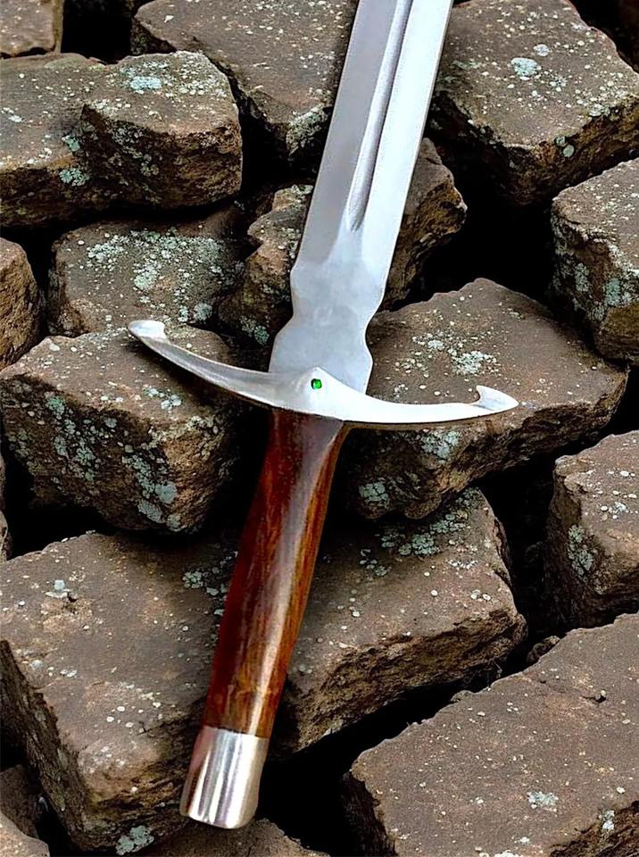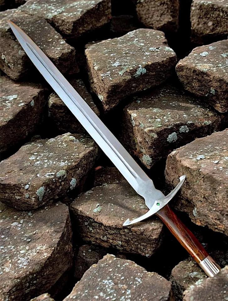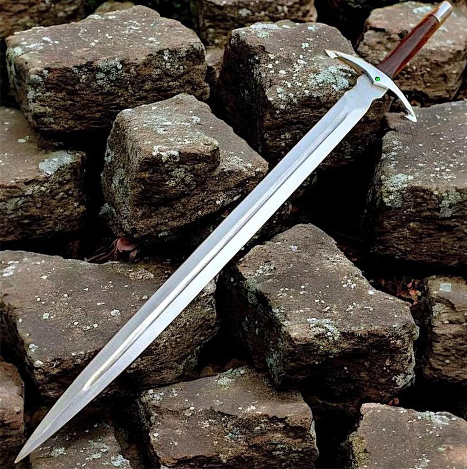 Garde-main médiéval forgé à la main avec accent émeraude | Épée en acier inoxydable avec fourreau | Manche en bois de rose