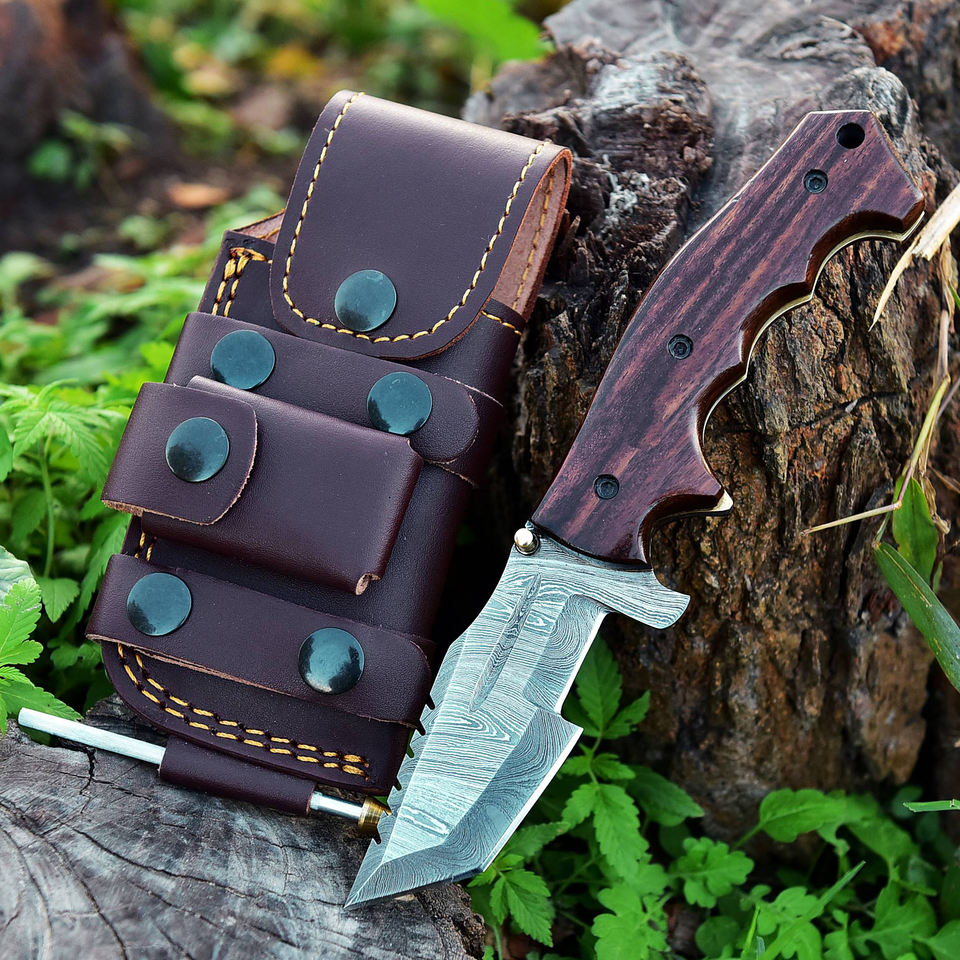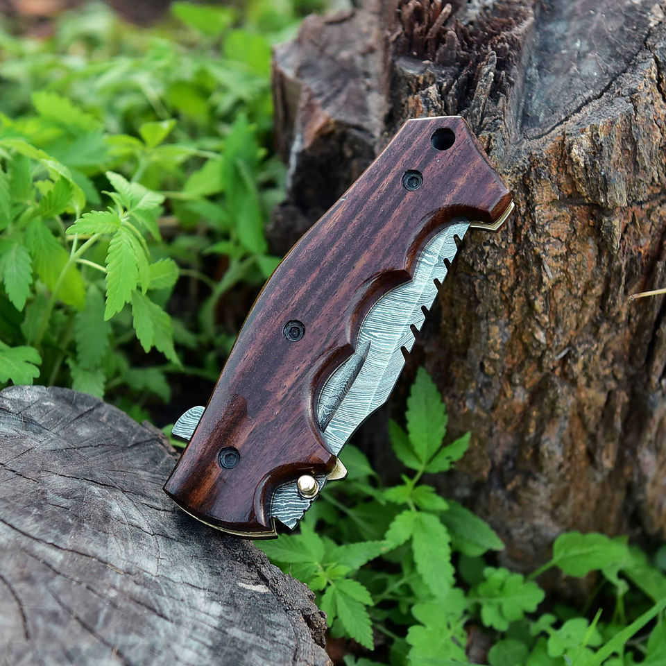 Couteau pliant de camping en acier inoxydable forgé à la main avec manche en bois, options personnalisables OEM